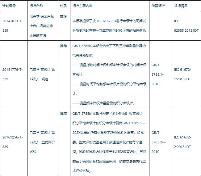 在5项电子行业推荐性国家标准中有3项涉及声级计,分别为: